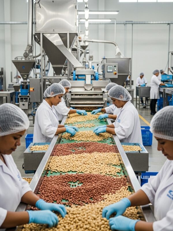 Cleaned and graded peanuts for snacks and food processing.
