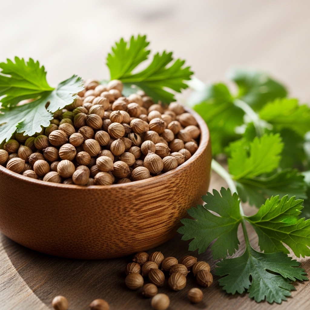 Fresh coriander seeds with rich flavor and aroma.